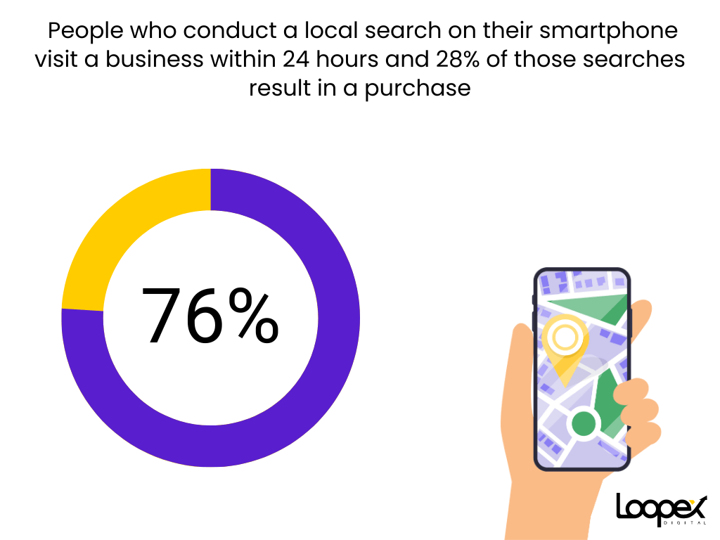 Plus, 76% of consumers used search engines to find local businesses and visited them within 24 hours, and 28% of those resulted in a purchase. That’s a huge opportunity.